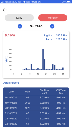 Power consumption data available on app (Live & Historic)